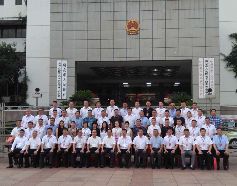 9月23號,瑞安市工商聯(lián)第十一次,總商會第六次會員代表大會在市政會議中心大會堂召開。省工商聯(lián)副巡視員黃強、溫州市工商聯(lián)副主席周有銘到會祝賀并講話,我市領(lǐng)導(dǎo)陳勝峰、葉世林、白一帆、方暉、陳世堯、林濟晚、陳榮臻、王建東參加會議。會議選舉了新一屆工商聯(lián)主席(總商會會長),我公司董事長項建忠當選為工商聯(lián)主席(總商會會長)。